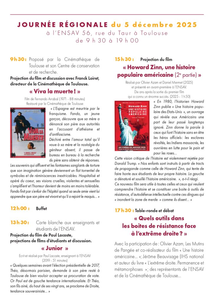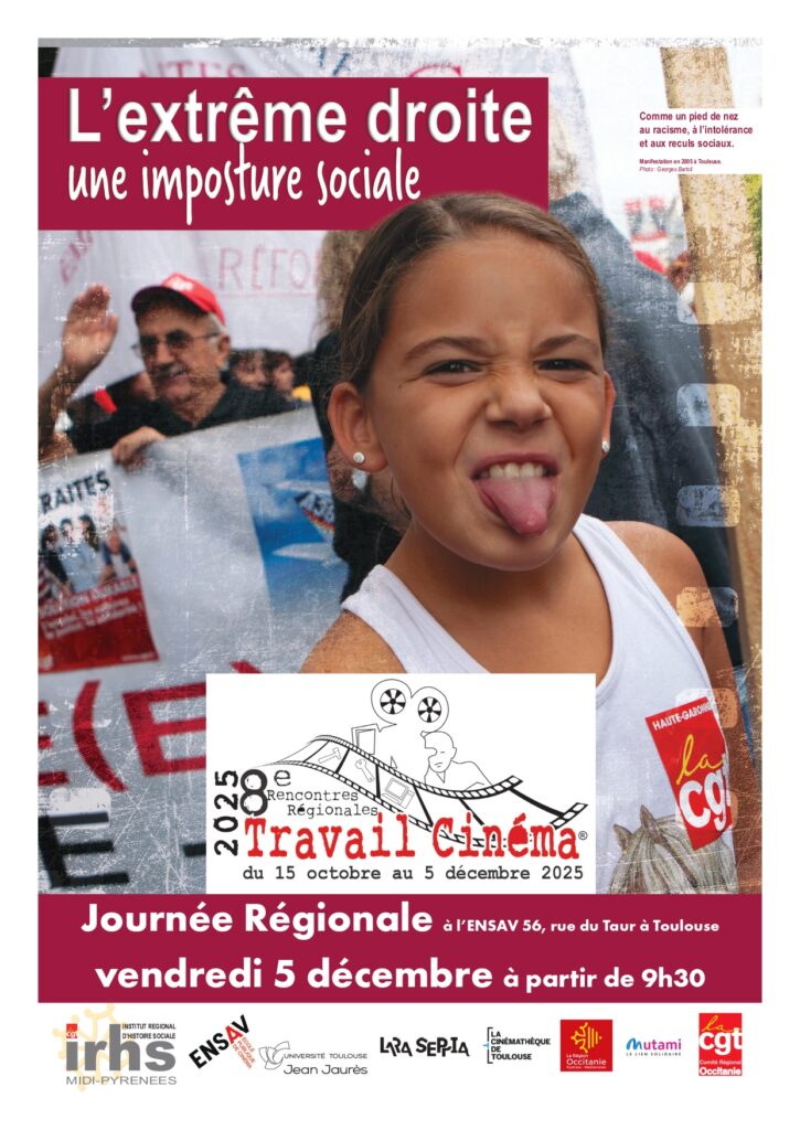 Le vendredi 5 décembre 2025, 8e Rencontres Travail Cinéma : « L’extrême droite : une imposture sociale », journée régionale co organisée par l’IRHS, la CGT, la Cinémathèque, la Région Occitanie et l’Ensav.